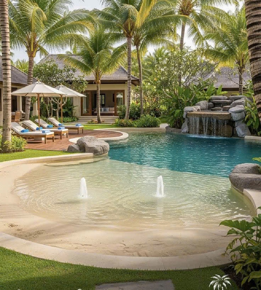 Bể Bơi Cát Nhân Tạo (còn gọi là bể bơi phong cách biển nhân tạo) đang trở thành xu hướng thiết kế mới trong ngành xây dựng bể bơi nhờ khả năng mang lại cảm giác thư giãn như đang nghỉ dưỡng tại bãi biển thật. Không chỉ thu hút bởi vẻ đẹp tự nhiên, bể bơi cát còn là lựa chọn lý tưởng cho các khu biệt thự, resort cao cấp, homestay hoặc nhà ở có không gian sân vườn rộng.